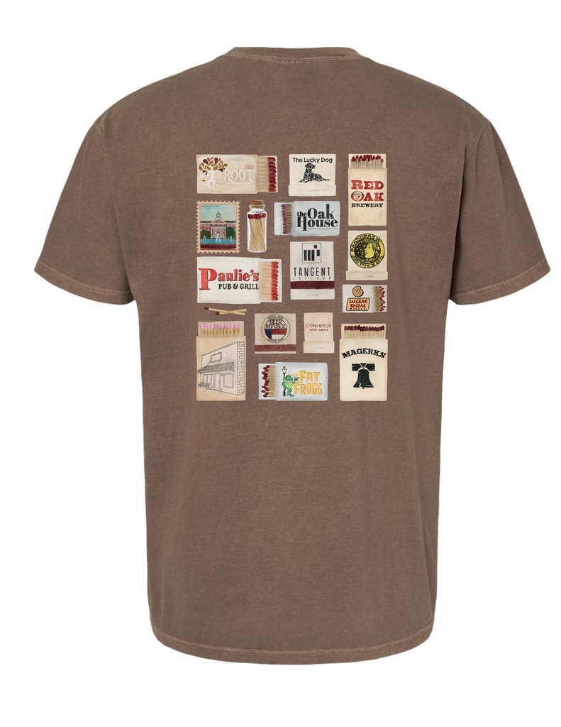 By popular demand we now have a matchbook t-shirt of our beloved town of Elon. Designed by our Jess Pendy.